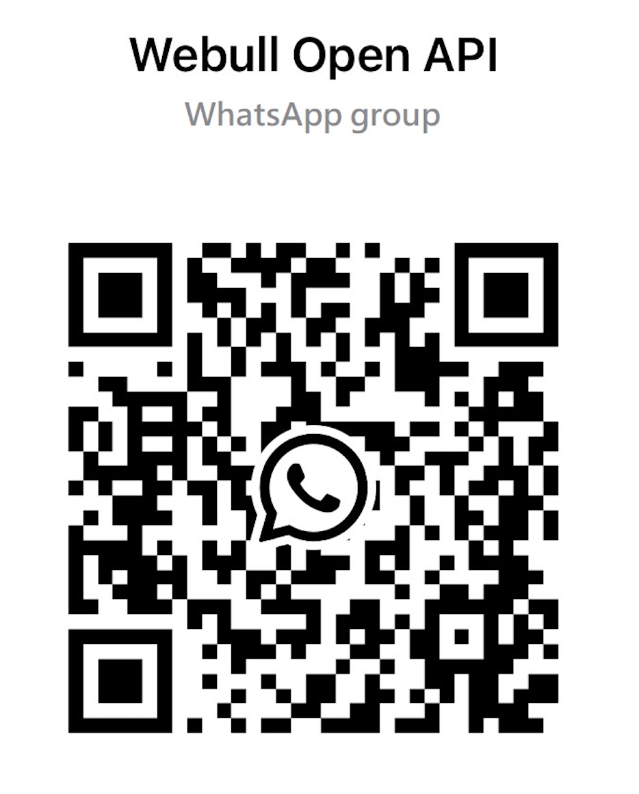 You can contact our staff via the Webull API service email address: webull-api-support@webull.com